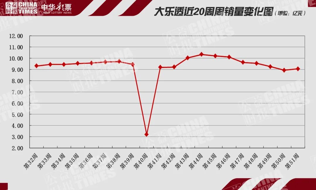 截至该周,双色球今年累计销量553.94亿元,较去年同期销量累计下降2.17%;大乐透游戏今年累计销量470.94亿元,较去年同期销量累计增幅4.93%。八大游戏截至该周,今年累计销量2110.07亿元,较去年同期的2124.03亿元累计下降0.66%。